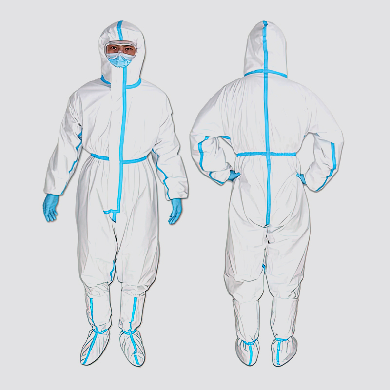 Pakaian pelindung medis satu potong berwarna putih biasanya menggunakan kombinasi mekanisme penyegelan untuk mencegah masuknya kontaminan dan mempertahankan segel. Mekanisme ini mungkin termasuk: